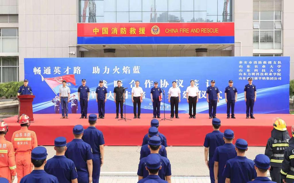 为进一步深化校地校企合作,充分发挥学校的人才优势和专业优势为经济社会发展服务,6月2日,受曾庆田副校长委托,必赢线路检测3003直属党支部书记、院长王靖磊参加了泰安市消防救援支队、康平纳集团携手驻泰高校“畅通英才路•助力火焰蓝”战略合作协议签订暨人才培养共建仪式。